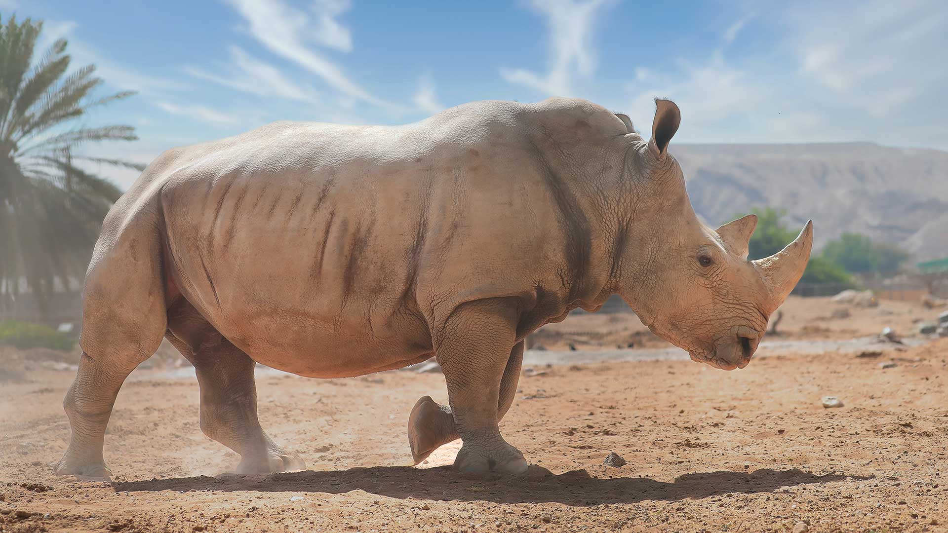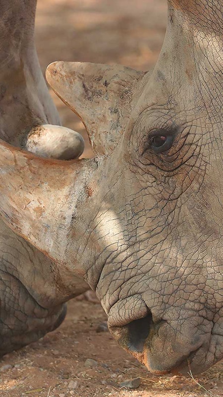 وحيد القرن من الحيوانات العاشبة التي تتغذى على العشب، ولها شفاه علوية عريضة ومربعة تتكيف تمامًا مع الرعي على الأعشاب القصيرة في السافانا المفتوحة.