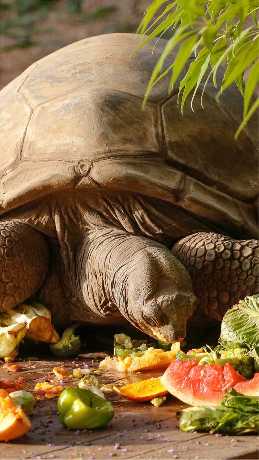 The Aldabra giant tortoise habitat includes scrub, mangrove swamps and coastal dunes.