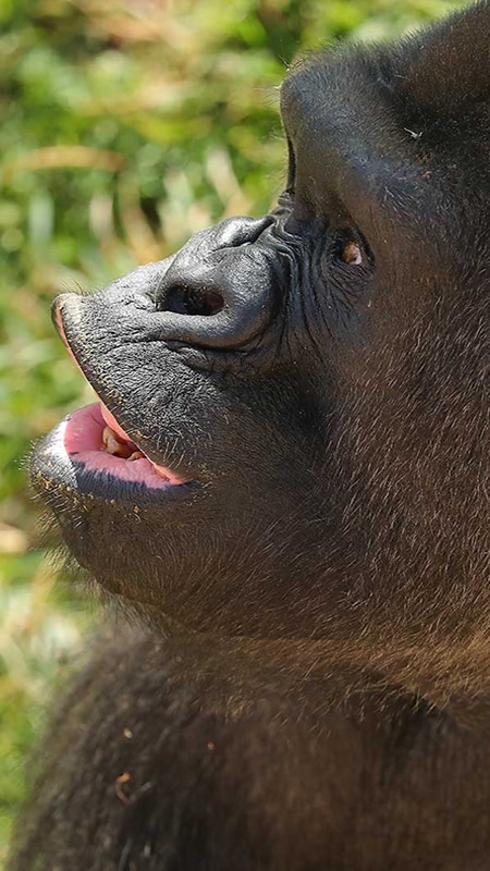 Gorillas share about 98% of their DNA with humans, making them one of our closest living relatives. They are also the largest living primates, growing up to 1.7 meters tall and weighing between 135 and 220 kilograms. Besides human-like hands, broad chests, and expressive faces, they share our social side too, living in close-knit groups that function like families, where mothers nurture, carry, and groom their young for years. Often called “gentle giants,” they can display that immense gorilla strength through behaviors like the iconic “chest beat.”